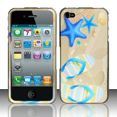 Premium Hard Case for Iphone 4/4s(all Carrier) Star Fish with Shells and Sandals+ Free Anti Dust Plug Fruit Design- Iviva